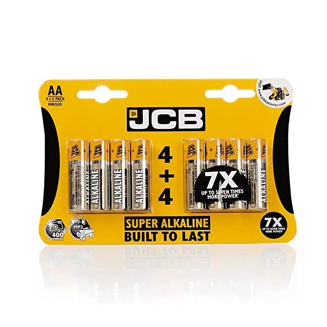 JCB Super alkaline AA batteries are ideal for high drain applications. They are especially suitable for the most popular portable electronic devices such as small torches, clocks, compact radios and music players as well as photographic equipment, pagers and certain remote controls. Please check the correct size before placing your order.