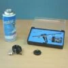 Air brush kit for fine work and stenciling. 50mm maximum spray pattern. 0.35mm nozzle, average consumption 0.4 – 0.7cfm, air pressure required 15 – 50psi. Supplied with 1 x 22cc paint bottle, 1.5m hose, viscosity cup, wrench and hanger.