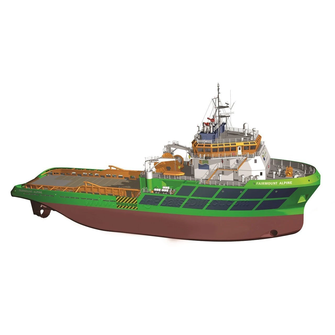 Billing Boats (BB506) Fairmount Alpine Tug – Model Boat & Fittings is a scale model of an ocean going anchor handling and salvage tug built in Japan in 2006. The Fairmount’s main activities are long distance ocean towage and salvage, with its fleet of five tugs of 205 tons bollard pull, the transportation of heavy lifts by semi-submersible barges and the worldwide activities of Fukada Salvage with its modern fleet of offshore support vessels and floating cranes. Fairmount operates a fleet of ultra strong long distance towing vessels, semi-submersible barges including the world’s largest unit the 50,000 dwt GAVEA LIFTER and multipurpose offshore support vessels.