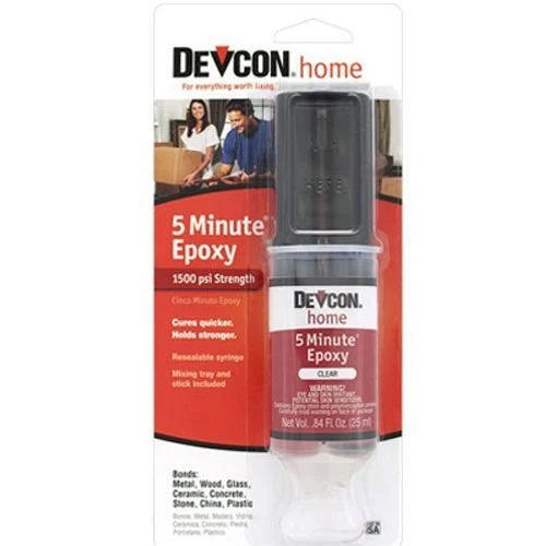 Quick Setting Epoxy automatically dispenses into equal parts with one push. Perfect for bonding glass, metal, china, wood, fiberglass or any project requiring 5 minute set time for parts. No mess, no spilling and no dried out tubes. Position time 2-3 minutes.