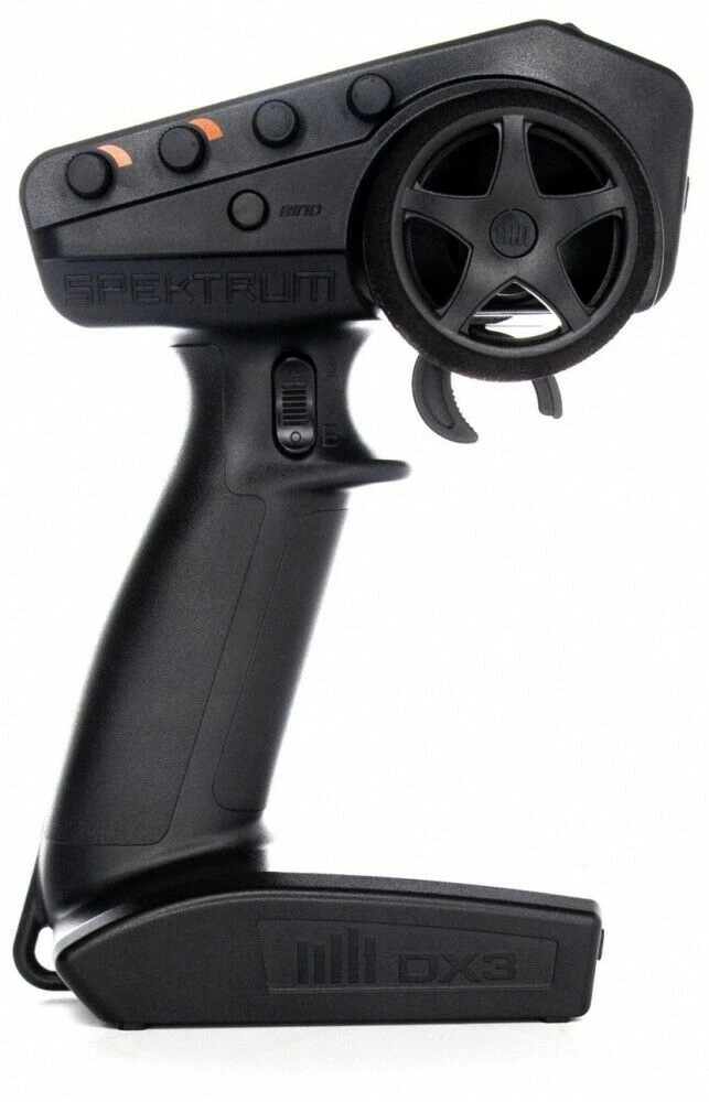 -  ERGONOMIC TRANSMITTER DESIGNThe ergonomic design of the DX3™ transmitter provides a feel that any driver will appreciate. Its overall low weight allows all-day driving with minimal fatigue. The control layout is amazingly intuitive – the servo reversing switches, steering and throttle trim dials, AVC/steering rate dial and 3-position throttle limiter are all perfectly positioned to be quickly accessible when needed and out of the way when not in use. An easy to grip, foam-covered steering wheel also contributes to exceptional comfort and precise control that all surface modelers will enjoy.