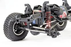 Updated locked front and rear axles feature a scale removable cover for access the metal drive spool and crown gear, while side chassis rock sliders help those annoying snags.