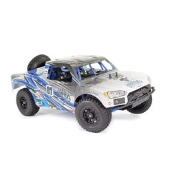 Front and rear fully independant suspension features oil filled shock absorbers, adjustable turnbuckles and anti-roll bars for fine tuning. Flexible front and rear wide tubular style bumpers and skid plates protect, while the pre-printed bodyshell covers an internal roll cage and driver cockpit.