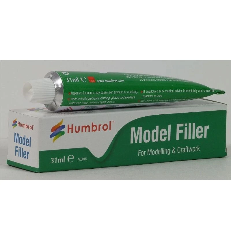 Model Filler – 31ml Tube – AE3016 Usage Fills hairline cracks and gaps between plastic parts. The product can be sanded when fully dry using a fine grade of sandpaper and painted. Substrate Plastic model kits. Application Directly onto substrate without excessive application of product. If gaps are deep two thin coats are preferable to one thick coat. Drying Time Surface dry in 1-2 hours. Fully dry in 24 hours. How to Clean Wipe away using a damp cloth. Product is permanent once dry.