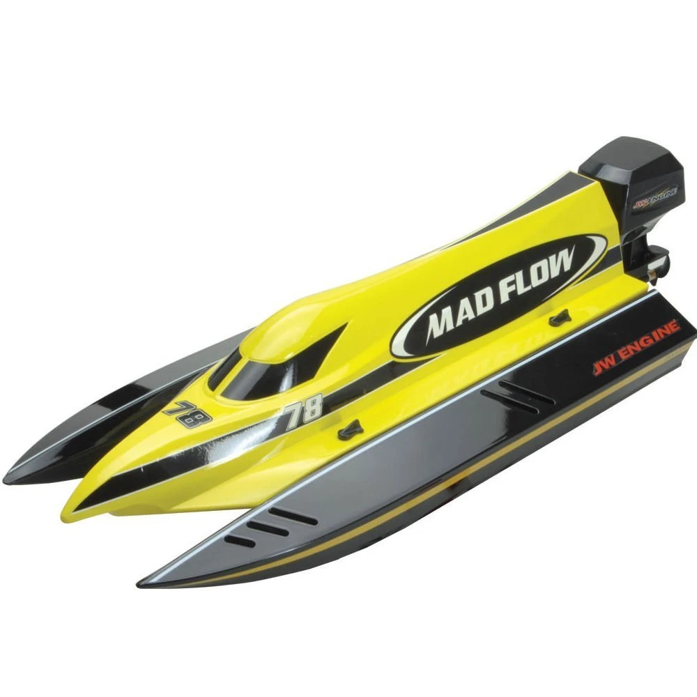 Joysway’s Mad Flow F1 Brushless ARTR Boat is faithful to the styling of the ultra competitive F1 tunnel-hulled boats, even featuring a convincing dummy outboard motor!