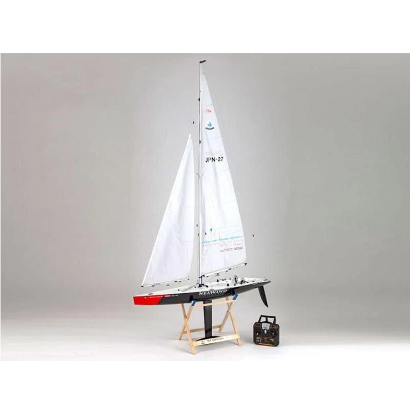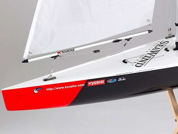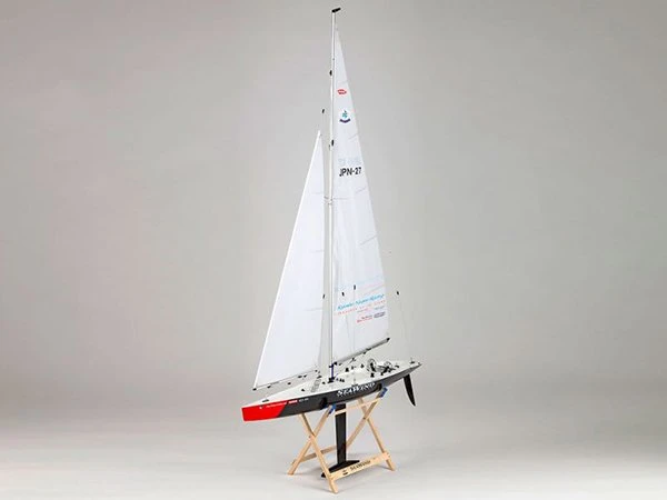 Kyosho has captured the stunning style and performance of the JF class yacht racing in a model worthy of its high-end status. The classic design of the ‘Seawind’ has cruised the waterways with grace and speed since it hoisted its colors more than 20 years ago. The large aspect ratio of the long span keel and tight response from the push-pull rudder control make up the Seawind’s race-ready specifications. Sharp acceleration brings the Seawind quickly up to full speed while exceptional energy efficiency delivers maximum stability in light winds so you can use light breeze like a pro. The Readyset includes a molded one-piece ABS hull factory finished in a beautiful color design that comes fitted with a 2.4GHz RC system that automatically manages frequency band selection. With the Seawind, you can be cutting a wake through the water in a high-end racing yacht in next to no time, and at a reasonable cost too. In addition, the mast, keel and rudder can be detached without the use of any tools for compact storage and transport so you can take it with you on holidays without it taking up a lot of space. The sail and rudder servos are waterproof and deliver exceptional reliability under various conditions. Answer the call of the wind with this high-level Seawind Readyset!