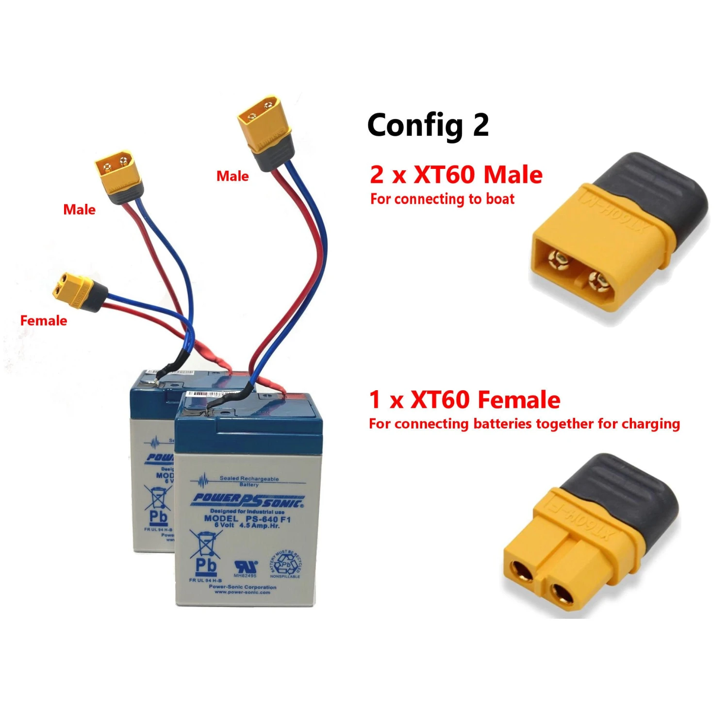 Config 2: 2 x XT60 Male connectors. 1 x Lake Reaper Female connector (please see product images).