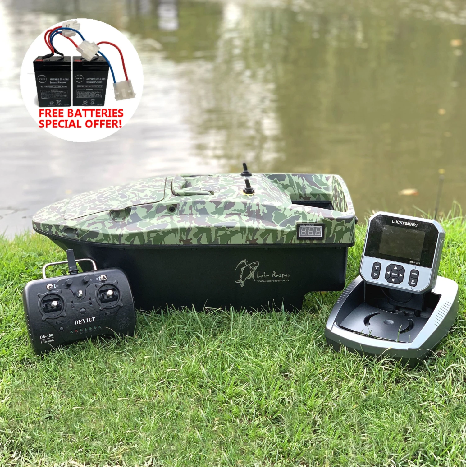 FREE BATTERIES SPECIAL OFFER! WE ARE CURRENTLY OFFERING A FREE, EXTRA SET OF BOAT BATTERIES WITH THIS LAKE REAPER BAIT BOAT! THIS OFFER APPLIES FOR THE FIRST 50 ORDERS SO BE QUICK!