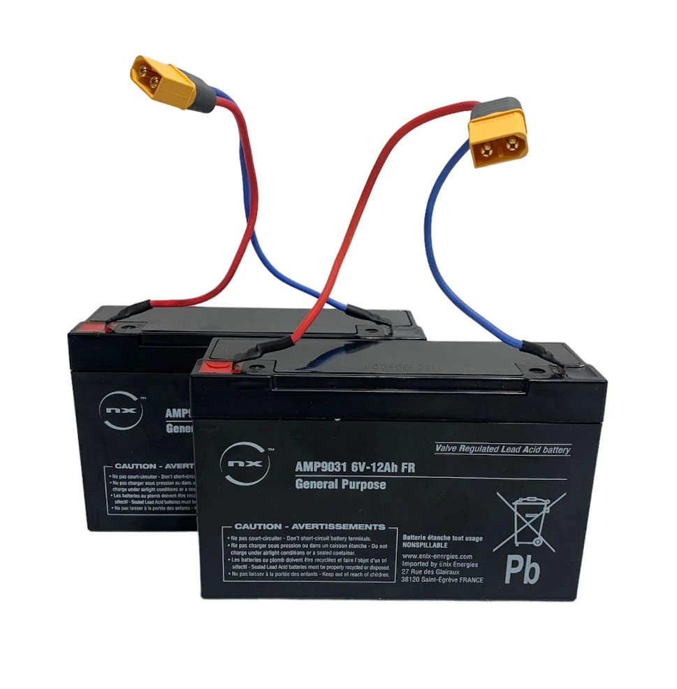 Power – 2 x 6 volt 12AH Lead Acid Batteries (XT60 Connectors Fitted)