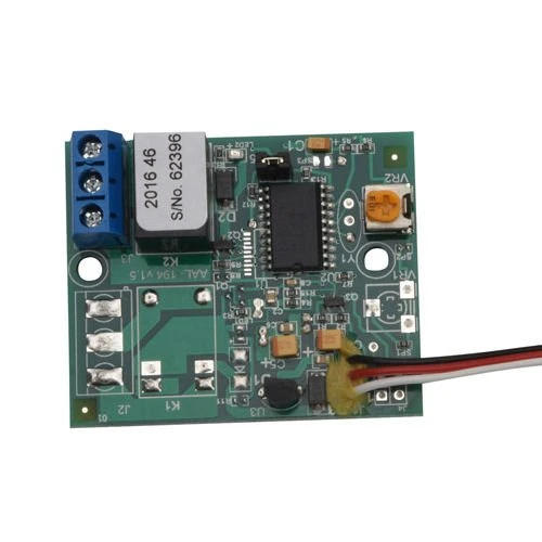 Universal 1-channel relais-switch for connection to receiver PWM signals (suitable for most standard receivers). Loads like motors, lights, horns etc. can be switched directly by connection to one receiver channel. Maximum switchable power: up to 24V and 5A. Switch point is adjustable by a small potentiometer. Selectable memory function for switching with a momentary channel -switch or transmitter-stick.