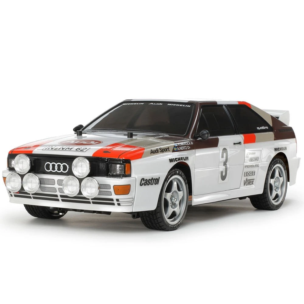 The Audi Quattro A2 is an iconic Rally Race Car that made its mark in the 1980’s. Tamiya’s 1/10 scale radio control replica brings rally racing fun to hobbyists on the adaptable and easy-driving TT-02 chassis.