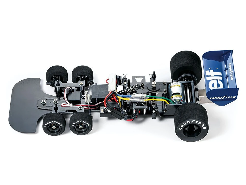 The Tamiya P34 Six-Wheeler R/C kit has enjoyed a rich release history. This release is an updated version of the Tyrrell P34 Six-Wheeler as raced at the 1977 Argentine GP (previously released as Item 49154 and 58003). The updates include some changes, which include updated instruction on the color needed to paint the side mirrors, and livery location tweaks.