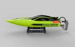 The streamlined hull is tuned for optimum handling and is able to run in relatively small bodies of water. There are two turn fins for increased agility and two adjustable trim tabs so you can set the angle the boat runs in rough or calm water. The hull of the boat was also designed to be able to turn back over in the unlikely event that it flips upside down.