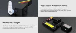 The boat is supplied with a Li-Po battery for the best performance and duration available. It is a high quality 3S1P 11.1V Li-Po with a capacity of 2500mAh and a discharge rate of 25C to really pack a punch.