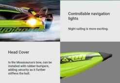 40km/h on 3s LiPo all-out! Mosasaurus means business with its super-rigid, 22-inch deep-V hull, smooth, cable-drive efficiency, innovative water cooling system, and precision drive controls. The clean, modern hull design is built up in layers for maximum rigidity and its bold colour makes a statement on the water.
