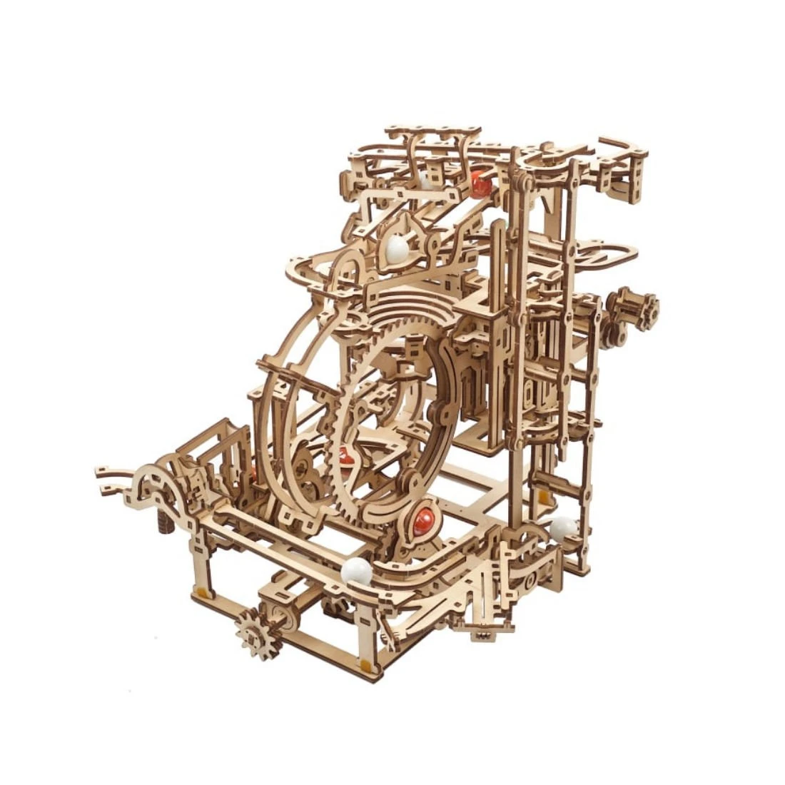 You and your family will have hours of fun constructing this DIY kit together, without need of glue or special tools. And with Ugears, the fun doesnโt stop with the build. When you build a Ugears marble run the fun is just beginning! You, your family and friends will have hours of enjoyment watching this ingenious machine send marbles through a serpentine course, swirling down a funnel, or flipping upside down in a hammer swing. Like all our models, brain teasers, and 3D puzzles, the Ugears Marble Run Stepped Hoist is a beautiful standalone, or it can form part of a growing collection of marble runs or other elegant, functional wooden mechanical models.